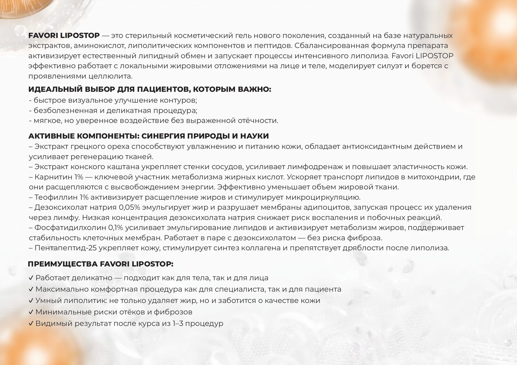 Состав: Карнитин 1%, Теофиллин 1%, Дезоксихолат натрия 0,05%, Фосфатидилхолин 0,1%, Пентапептид-25,